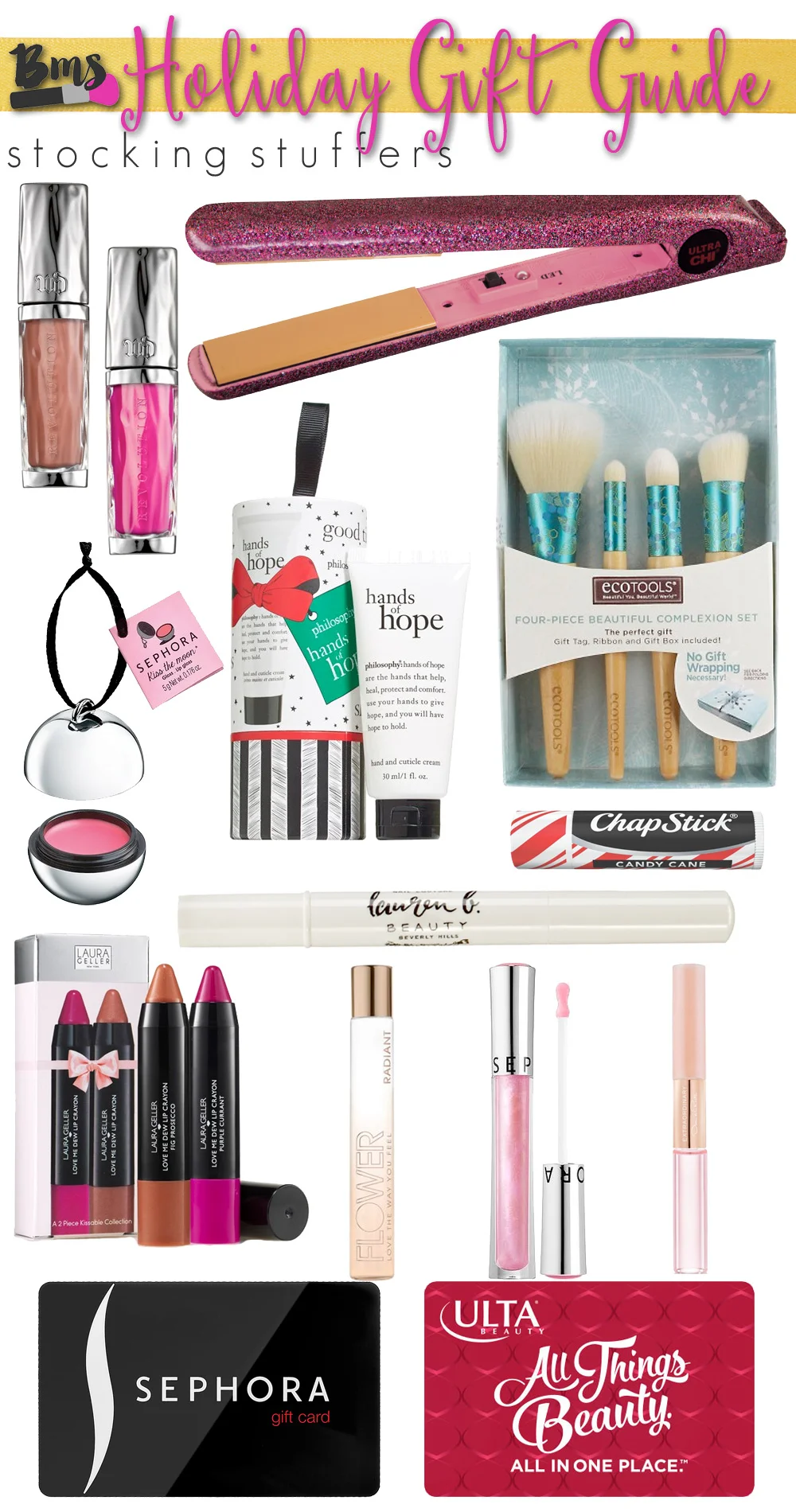Everyone loves a gift card, and getting one in a stocking in perfect! I love little gift card of beauty and my favorite place to shop for beauty are Sephora, Nordstrom, Macy's, Ulta and CVS. They all offer gift cards. Even gift cards in the amount of $20 or $50 make perfect gifts!