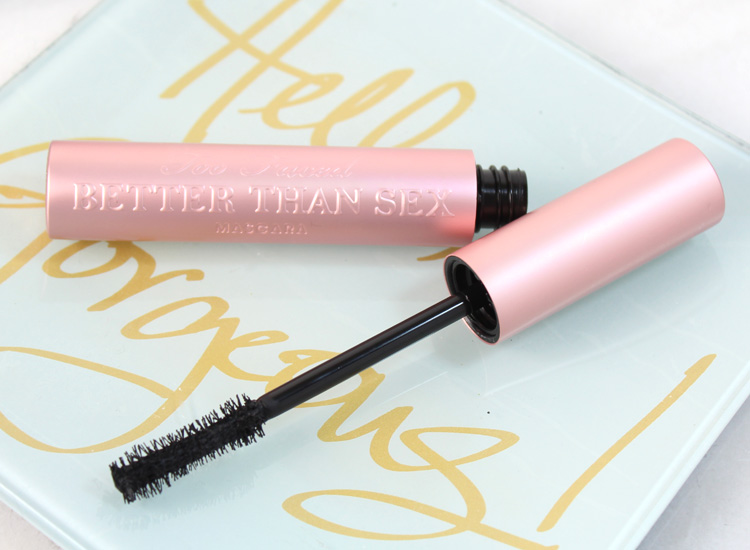 I finish my eyes with one of my all-time favorite mascaras, Too Faced Better Than Sex Mascara. If you haven't tried this mascara yet, go and get yourself a tube! This mascara does so much for lashes; it is insane. It features a cool hourglass-shaped brush that helps to wiggle the dark black, volumizing formula into the lashes, so lashes look extra full and defined.