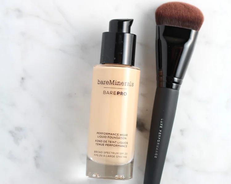 BAREPRO Liquid Foundation is a very nice creamy liquid foundation that blends nicely over my skin; it blends well. I have tested it with the bareMinerals Luxe Performance Brush and a beautyblender. Both result in medium coverage, but I feel I get a little more coverage and a smoother, more blurred look and finish when I use the beautyblender sponge to apply. I think I use more foundation when I use the sponge versus the brush, but I like the end result more with this method.