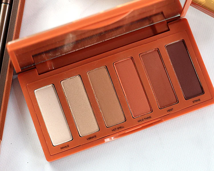 Urban Decay NAKED Petite Heat is the same size of the Urban Decay NAKED Basics palette and it's perfectly portable and pocket-sized. Just like last year’s NAKED Heat, this all-new mini palette contains scorched matte neutrals.