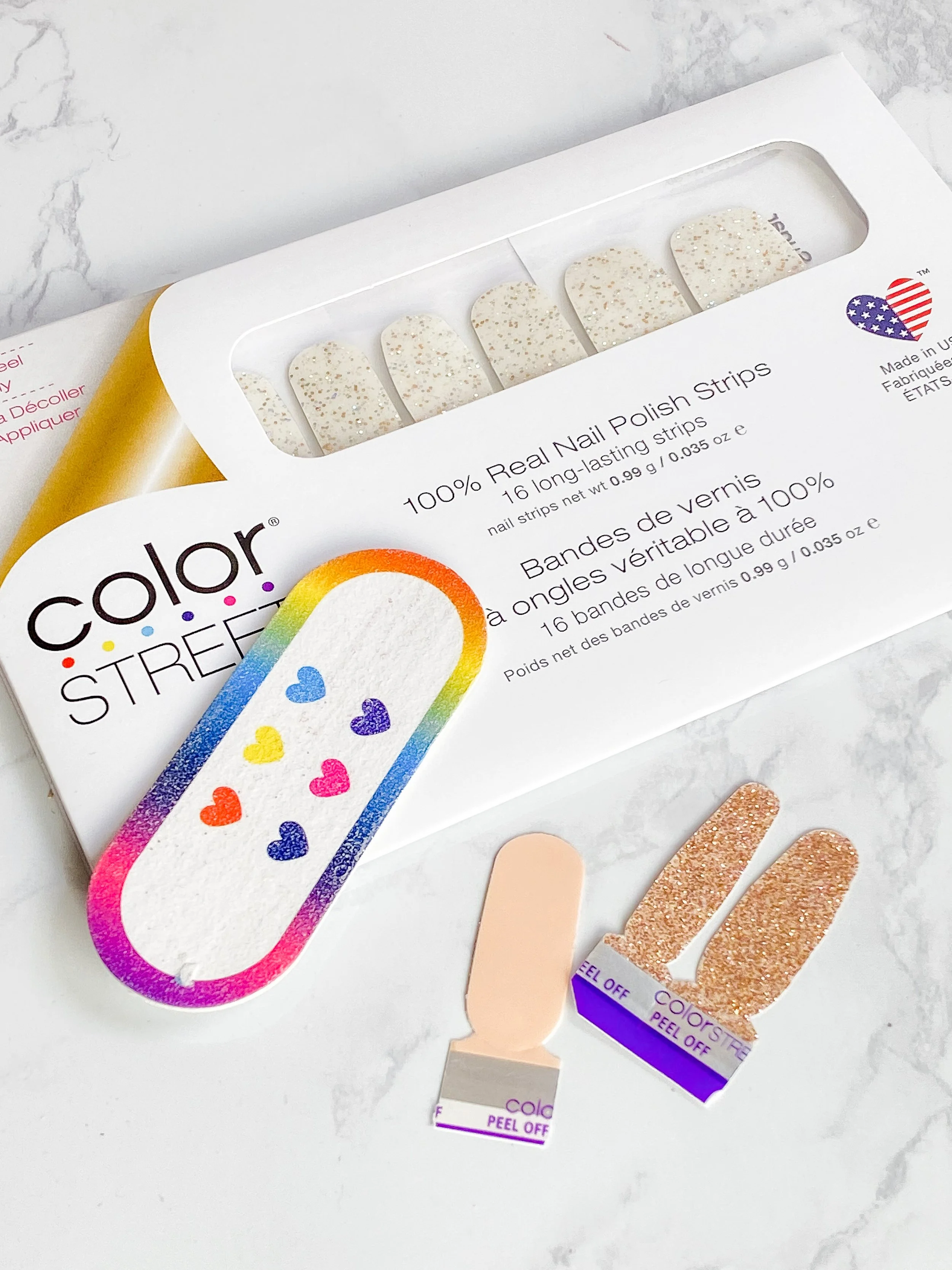 Color Street is a nail polish strip beauty brand. I would like to say that they are the innovator of nail polish strips, not only because they were originally created in 1988, but because they are far superior to any other nail polish strip. I have tried quite a few nail polish strips, and none compare to Color Street. These dry nail polish strips are made of real nail polish, adhere to the nail, and wear for two to three weeks.