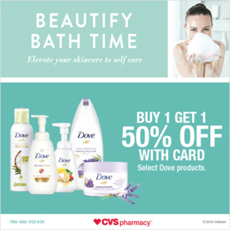 Right now, select Dove products are Buy 1 Get 1 50% off with your CVS ExtraCare card at CVS through 9/28.