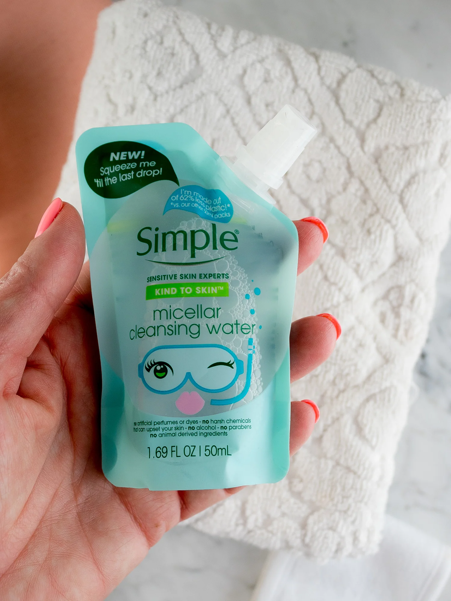 I am already a user of the Simple Micellar Cleansing Water and the on-the-go sachet in the super cute, flexible and ultra-light packaging spoke to me. Knowing that I would want to take this along in my purse, beach bag and gym bag made this portable skincare product a must-have.