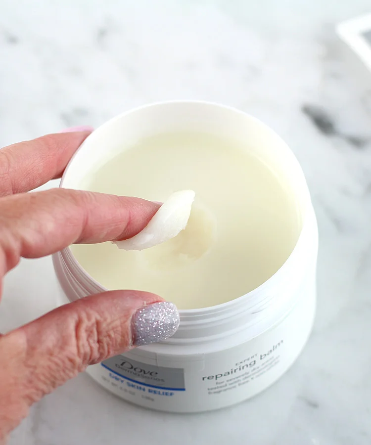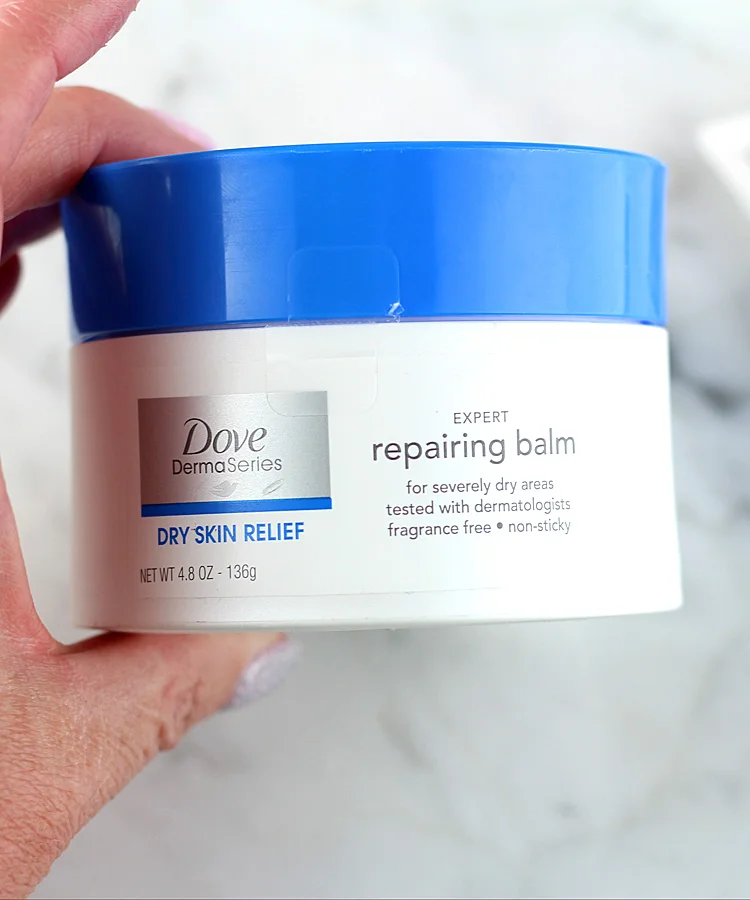 Dove DermaSeries Dry Skin Relief Expert Repairing Balm - For the areas of the body that feel like sandpaper (knees, elbows, heels), this skin balm uses a unique petroleum jelly blend that smooths and repairs these rough spots. It is the perfect treatment for extremely dry skin with a fast absorbing formula that glides on and sinks in to make skin look and feel better immediately.