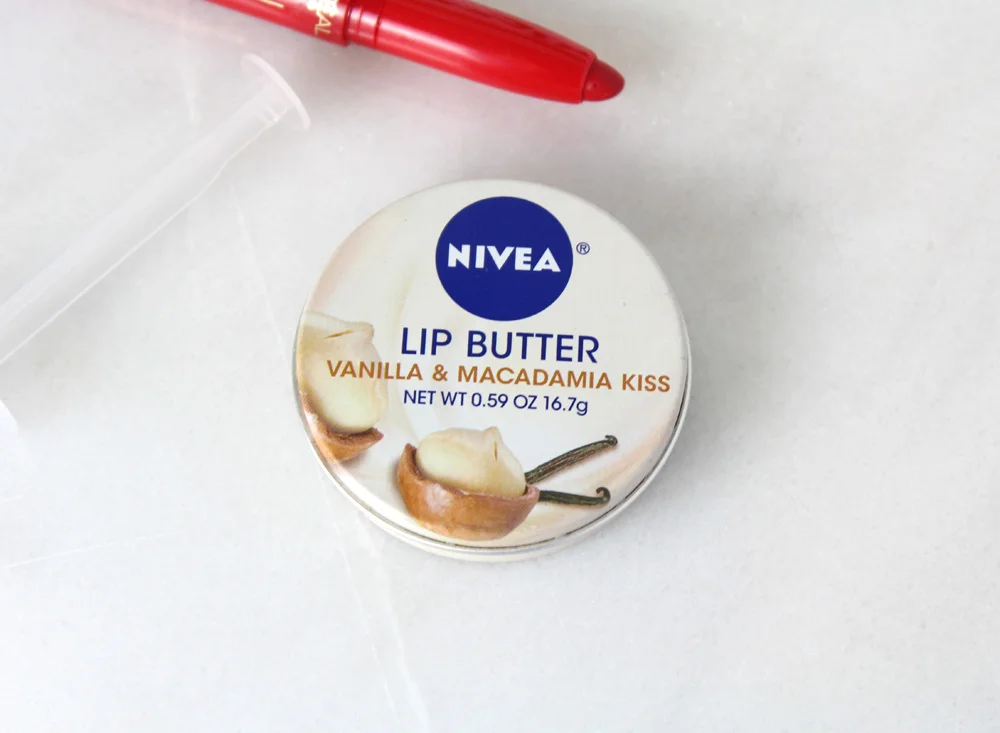 After using the lip exfoliator and every night before bed, I apply a lip balm on my lips to keep my lips smooth. I like Nivea Lip Butter to lock in natural hydration with Shea Butter and Almond Butter.