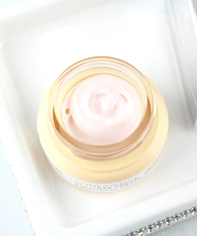 Confidence in an Eye Cream has a slight tint to it and it seems to have a mother-of-pearl finish that diffuses light so fine lines and wrinkles are smoothed away immediately, even though it might just be a trick of the light. Over time and with continued use, skin will become more firm as skin barrier is repaired. I know that I immediately saw an increase in hydrated and brightening and it does feel very refreshing. I will continue to use this one.