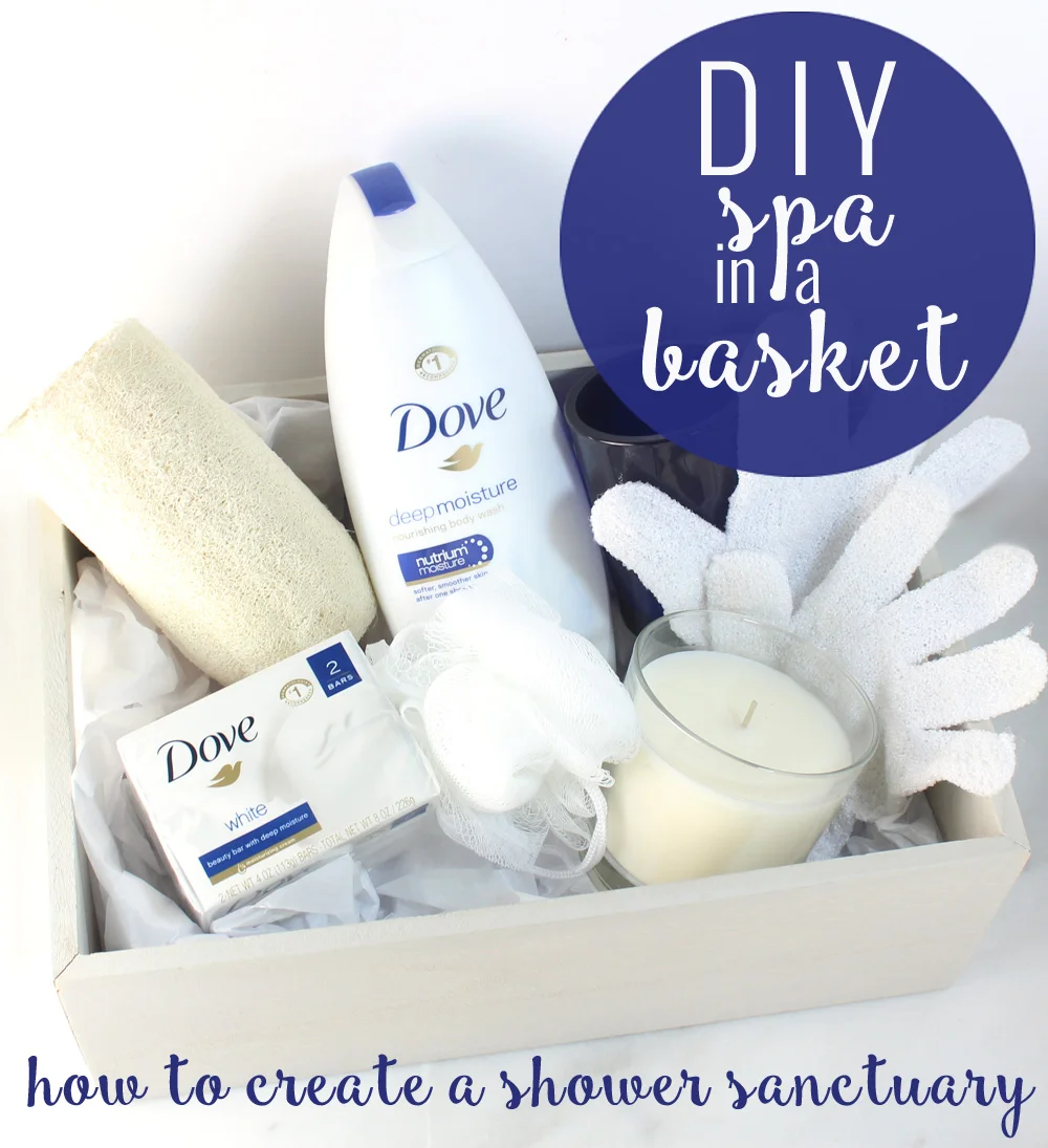 The best thing about my Spa in a Basket is that the products can be easily found at stores near you — no heading out into the crowded mall. I picked up my Dove favorites from Sam’s Club and put them into a crate that I bought at my local craft store. Buying the large packs at Sam's Club, I can create a few gifts at once and have left overs for my own shower. Dove Deep Moisture Body Wash comes in packs of 3 and Dove White Beauty Bars come in packs of 16! I bundled these nourishing bath and body products with other products that I use to create my shower sanctuary and put them in the Spa in a Basket as well. I included a few candles, a bath pouf, a loofa and exfoliating shower gloves. Voilá!