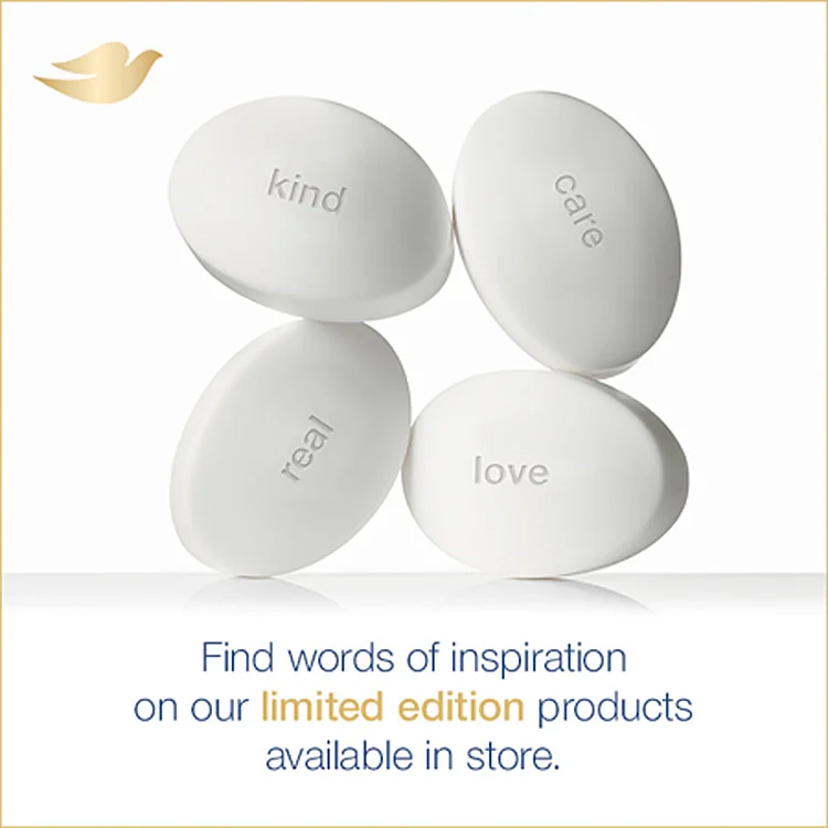 The Dove Beauty Bar is of course a must-have for its everyday skin cleansing and moisturizing properties. Made with 1/4 moisturizing cream in each bar, Dove Beauty Bar helps skin feel more firm, soft and smooth compared to cleansing with ordinary soap. The engraved words on the limited-edition Dove Beauty Bar are truly representative of the real women who inspire us in our daily lives. Each bar will be engraved with either love, real, kind or care.