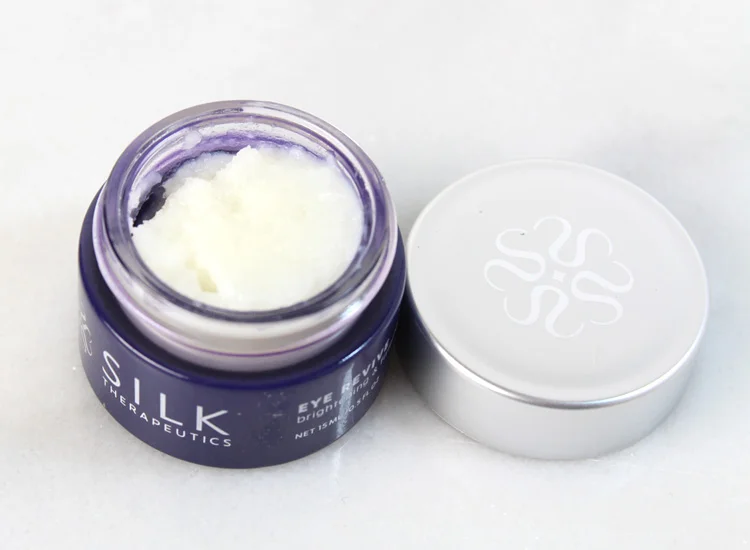 For my eyes, I have been obsessed with Silk Therapeutics Eye Revive. This eye treatment uses real silk to greatly diminish under eye puffiness. Overtime, it will also help to reduce things like fine lines and dark circles. I like how it works on my puffiness. I can see it go to work after I let it set under my eyes for a few minutes. All I need is a very fine layer of product.