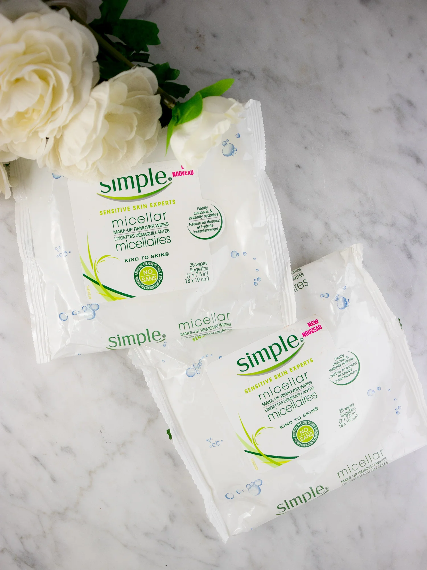 Finally, I can’t live without my Simple Micellar Make-Up Remover Wipes. These are my nighttime go-to’s when I need to remove every bit of my makeup before cleansing my face. I go through packs of these wipes and I stock up each season. The Take A New Look Rewards program was the perfect opportunity to really stock up because I know that I will be using these in my nightly skincare regimen.