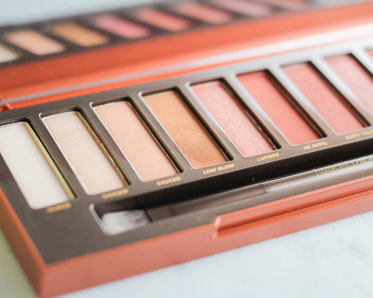 I am absolutely LOVING the Naked Heat palette. I have been mixing up looks, but I seem to use Ounce, Chaser, Sauced, Lumbre, Cayenne and Low Blow the most. I found that these shadows are like the rest of the brand's shadows; they are very well pigmented and stay on where you apply. I haven't experienced much fallout (I swear that depends on the brush you use). The shadows do last all day but look even better when you apply with Urban Decay Primer Potion, which I highly suggest using.