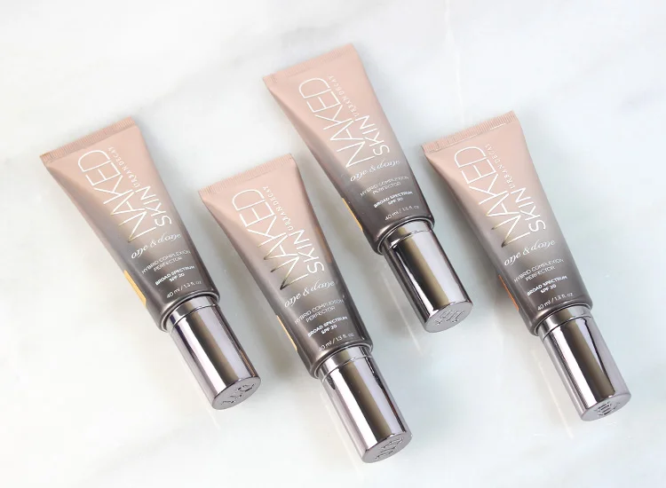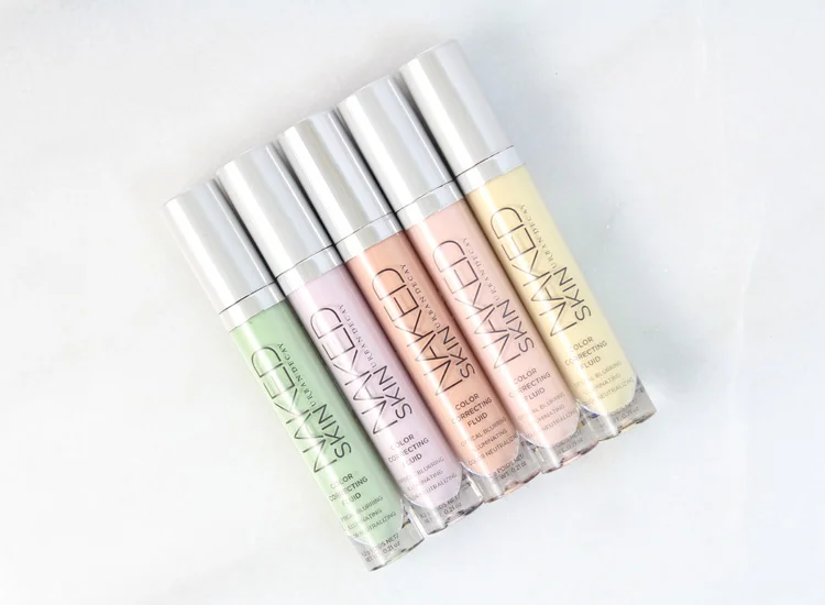 I suggest using NAKED Skin One & Done after color-correcting and perfecting the skin with the new Color-Correcting Fluid. The Color-Correcting Fluid comes in five shades to neutralize different skin flaws. If you have redness or blemishes, pick green; if your skin is dull, pick yellow; if your skin is really sallow or has yellow undertones that need cancelling out, pick lavender; if your skin has blue undereye circles pick pink; if your skin had sunspots and really dark undereye circles, pick peach.