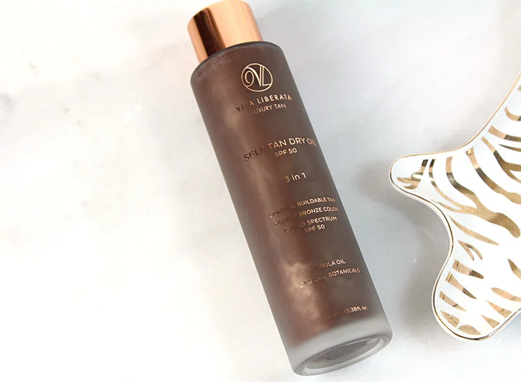Vita Liberata Self-Tan Dry Oil SPF 50 applies beautifully and gives skin an instant tint, so I'm sure to apply it evenly. I like to use this one in the morning because it offers such high SPF - perfect for using before heading out to the pool or the beach (just make sure to apply at least an hour before getting in the water). It gives skin a gradual tan, so it's not super dark from the get-go. It lasts too because of the brands pHenO2 Technology that is infused into the formula.